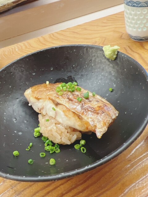 対馬の喉黒。紅瞳では有りません。炙って適度に脂を落として丼に。半分ほどいただいたところで・・・