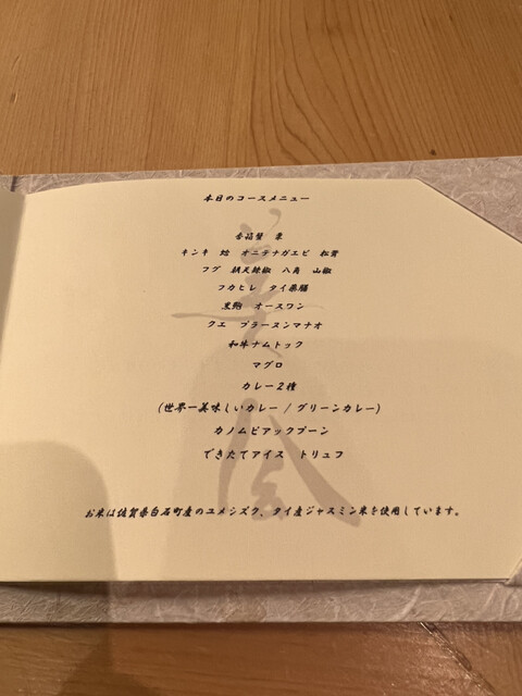 残暑厳しいおり、スパイスの刺激で身も心もスッキリしたいし、そろそろ変化球も必要かな、と言うことで、タイ中華と和食のイノベーティブ、勝手に名付けた和泰料理を選択します。