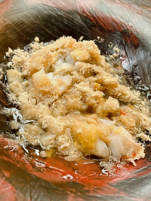 実は銀座時代にラッコのわがままで、メニューにも載っていない香箱ガニのプー・オップ・ウンセン(香箱蟹の春雨土瓶蒸し)を作っていただきました。それを覚えていただいていたんですね、嬉しいヾ(≧▽≦)ノ