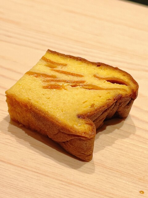アマレットに漬けた金柑の皮入りです。玉子というよりまるでパウンドケーキ
