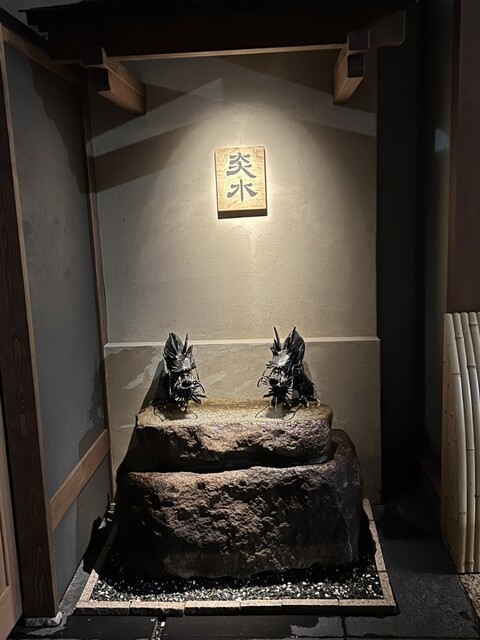 カウンターに至るアプローチの内装も、久住有生氏の塗りによる土壁。これは直に見るとやはり素晴らしい。美し過ぎるソムリエールの方も、以前の和装から黒服の洋装に衣替え。凛とした空気感に磨きが掛かりました。