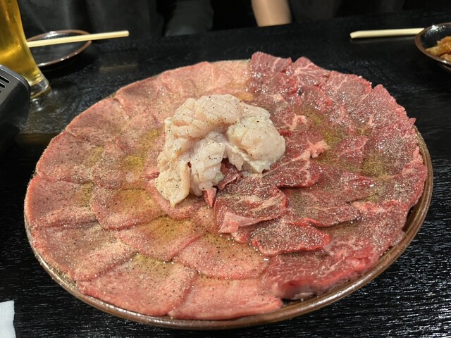 タン、サガリ、ホルモンからはじまり、ロースカルビで最後に締めの冷麺。