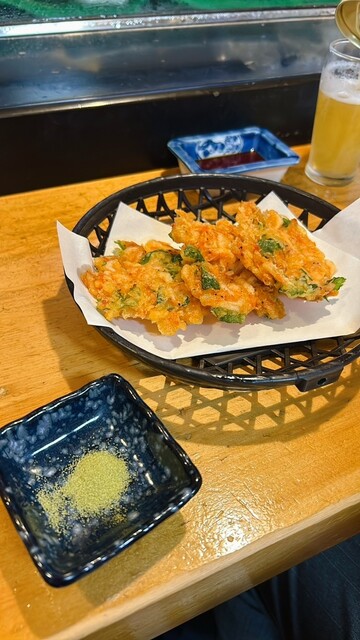 揚げたてサクサクの衣の中に、桜エビの旨みがぎゅっと閉じ込められていて、これは…酒が進む。