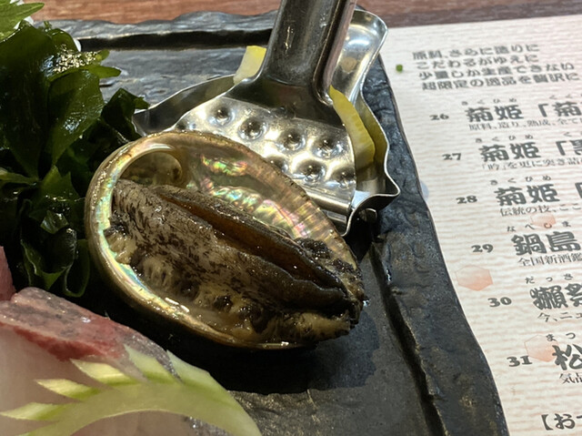 右上に生きたアワビが乗せられており、どのネタも味が引き締まっていておいしいです。