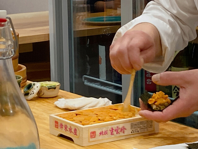 ここでウニか登場!わさびの辛味と一緒に楽しみますが、ツンとくる辛味とウニの旨味と磯の香りがとにかいいです(^^)
