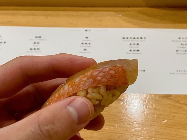 ジューシーな身がとにかく味わい深く、赤酢のシャリとよく合います。