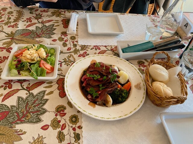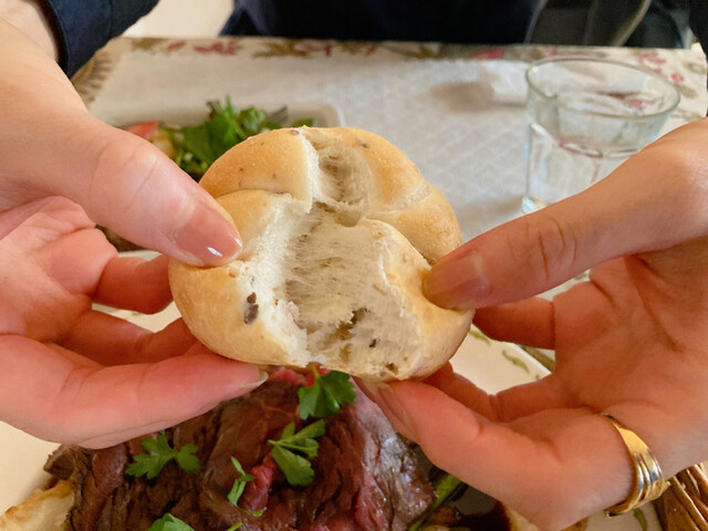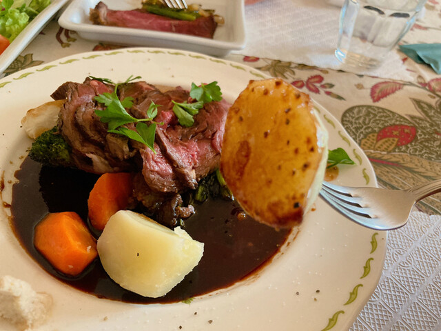 暖炉の熱で焼くローストビーフが有名なようでしたので、飛駒カットのローストビーフをオーダーしました。