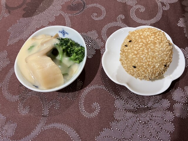 左:✳️豆腐干とセロリの食感サラダ、右:くらげの冷菜 /季節野菜の甘酢漬け広東風