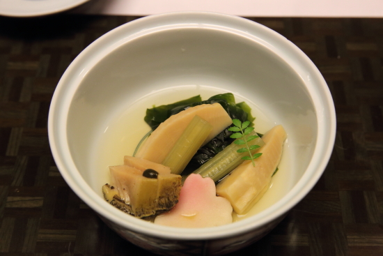 煮物は土筍土佐煮、新若布、蕗このこ射込み