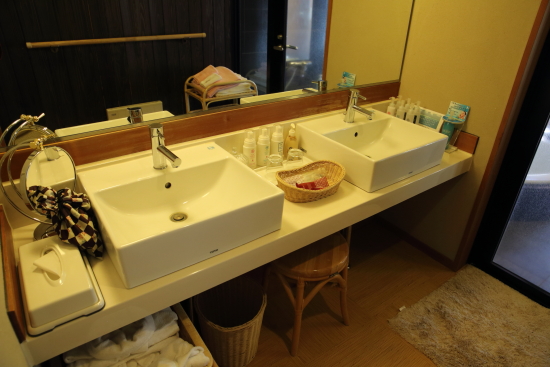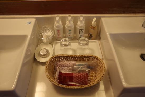 洗面所のアメニティは、クレンジング、洗顔料、化粧水、乳液が揃っています。