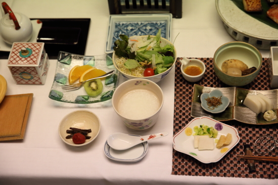 朝食のご飯は、お粥と普通炊きのご飯。