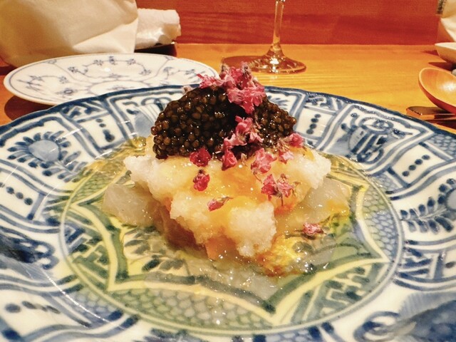 ・サクラマス漬け,スリネギ,ムラサキ雲丹,虎白ジュレ...