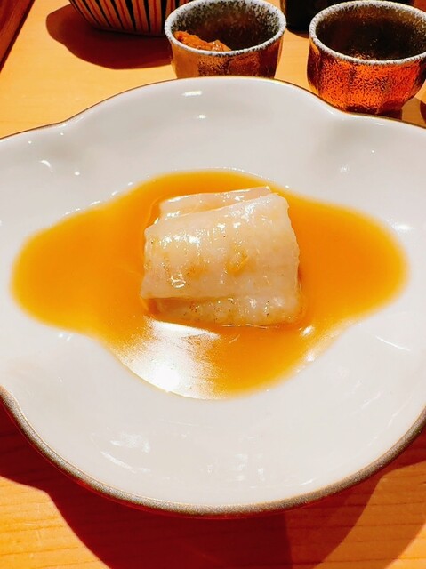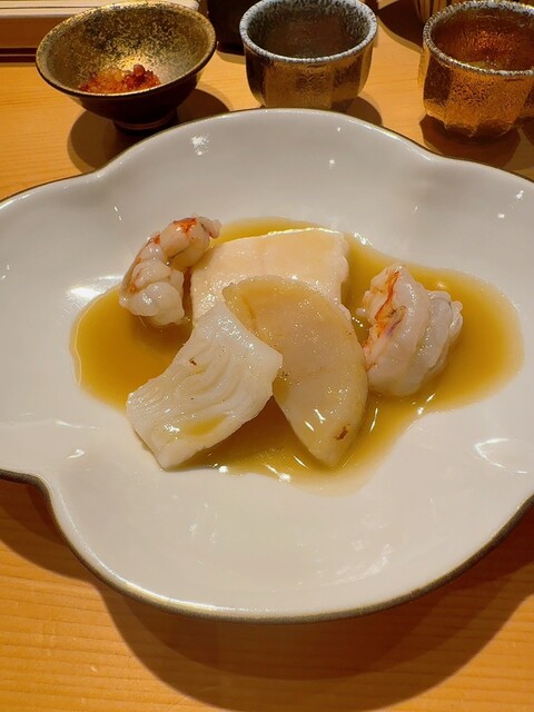 ・長崎クエ8kg,オイスターソース,鉄板焼き,小柱とさよりの漬け