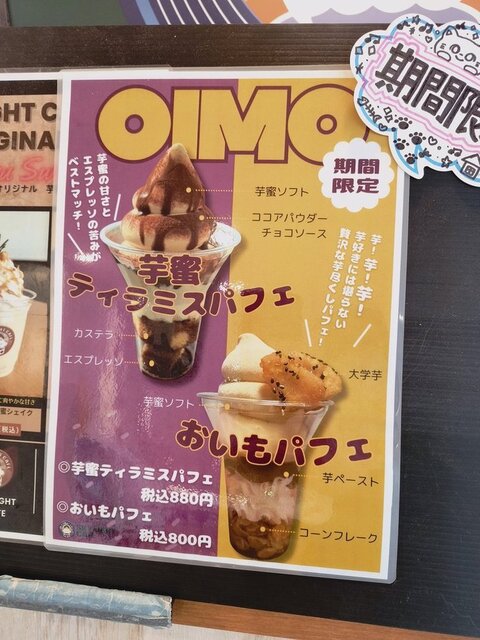 期間限定として蜜芋を使ったパフェやティラミスも販売。