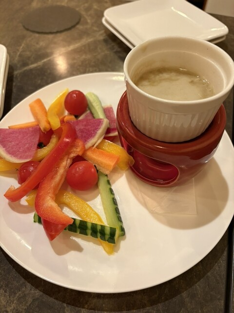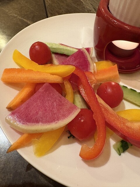 合わせて注文したバーニャカウダは、野菜が新鮮でソースも軽めのテイスト。シカゴピザの濃厚さをしっかり受け止めつつ、口の中をリセットしてくれて、メリハリのある組み合わせに大満足でした。