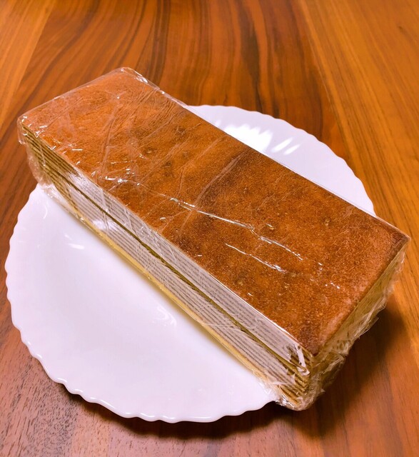 バウムクーヘン(1300円):レンガのような長方形のバウムクーヘンは、はっきりとした層が刻まれてます。自然な甘みが美味しく、いくらでも食べられます。