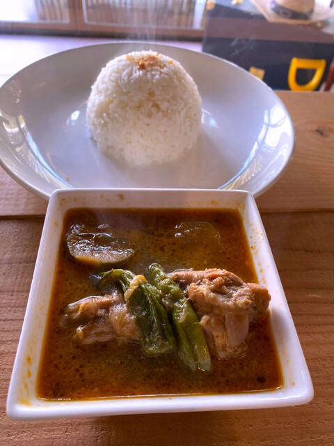 アヤム・ポンテ(1000円):マレーシア料理。鶏じゃがのっけご飯。辛いサンバルが合う。