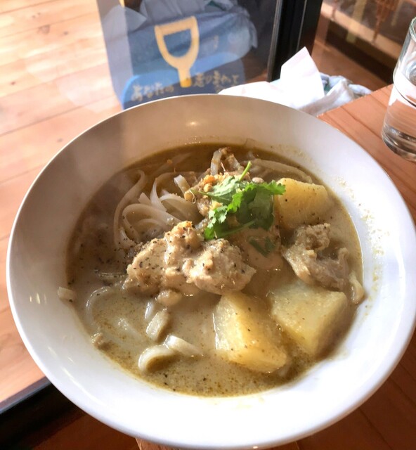 ゲーン・ガリー(1000円):タイ料理。鶏肉とじゃが芋入りイエローカリー。ココナッツ風味のカレーが染みた鶏肉がほろっと美味しいです。今回は米麺バージョン。