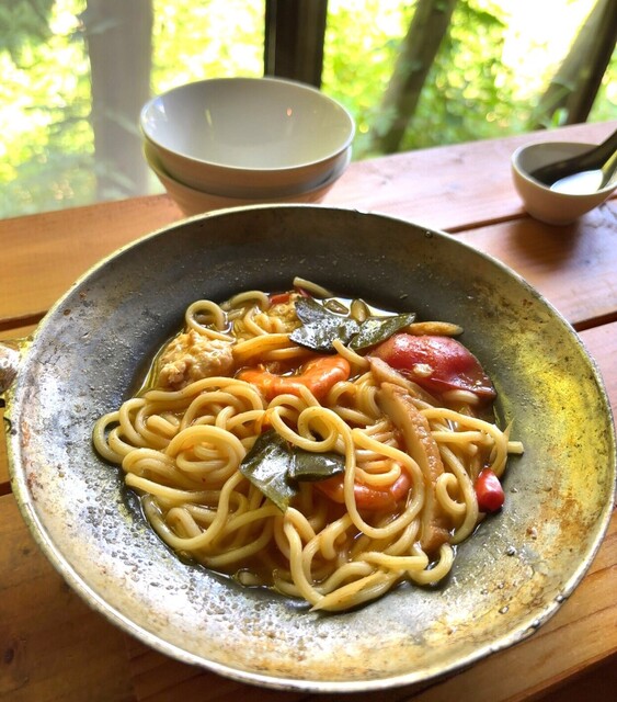 富山県北西部の氷見市と石川県の境の峠、熊無(くまなし)にあります。外観はごく普通の民家で、メニューは週替わりが3種類と、2週替わりが2種類、飲み物などがあります。