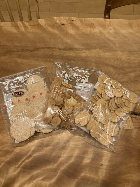 ヤバいです。一度開封したら止まりません。理性でジップを閉めても、5秒後に再びジップを開けてしまいます。おすすめは「たこうす焼き」タコの風味しっかりだけど、塩味が控えめで、フライで無く焼きなんで、パクパクいけちゃいます。相当久しぶりに伺い、価格はアップしてましたが、それでもお得感はずいぶんありますよね。そこかしこで自由に試食できなくなったのは残念ですが、無料でいただけるコーヒー美味しかったな〜ぁ。ごちそうさまでした。