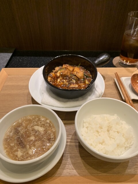 ご飯とスープのセットが一緒に出てきて、ご飯に麻婆豆腐をかけて食べる。幸せ。