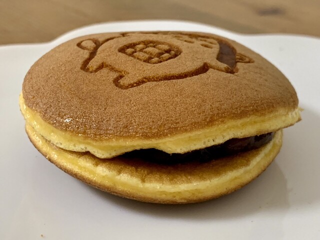 どら焼は、甘さ控え目なわらび餅に対して、しっかり甘さを感じられる和菓子になっています。皮はしっかりめで、はちみつの香りを感じ、あんこはどっしりとした粒あんです。お茶と一緒に食べたら最高です。