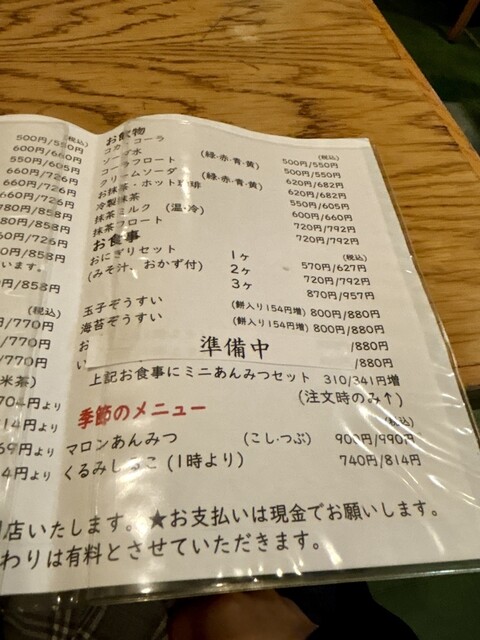壁に飾ってあるあんみつのイラストの手拭いが可愛かったです。