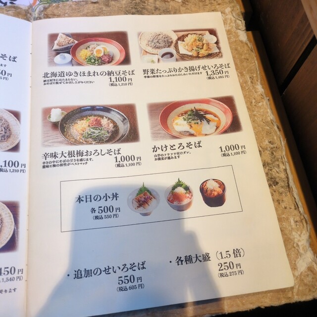 なお、この店はおでんやしゃぶしゃぶなどもあり、一品メニューもある事から夜は蕎麦居酒屋へと変身。