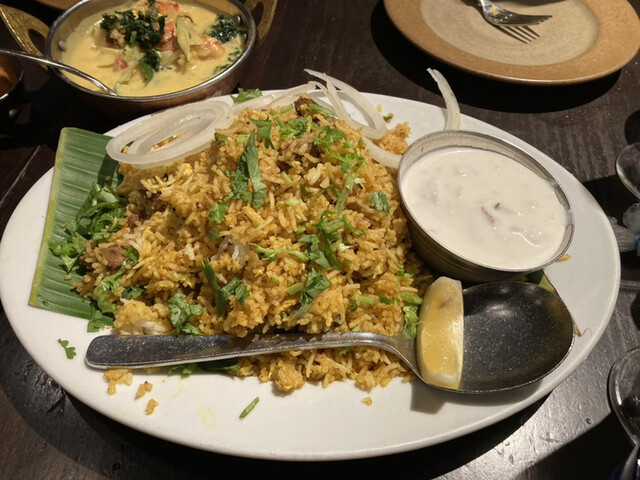ビリヤニは、そのままでももちろん美味しく、ヨーグルトソースをかけるとさらに美味しい!最後は贅沢に他のカレーと一緒に混ぜて食べました。