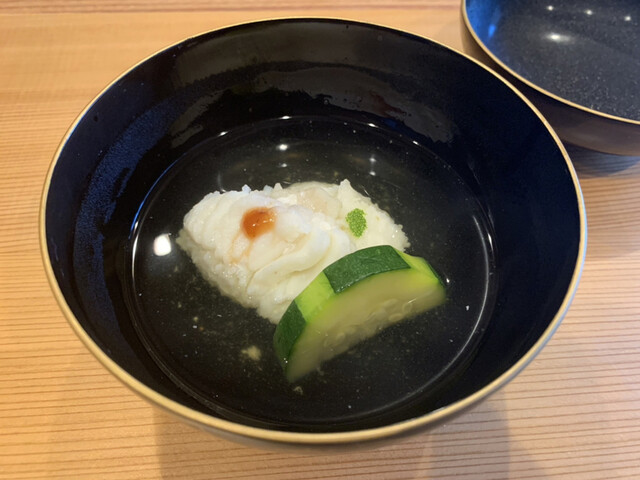 下には自家製の卵豆腐、合わせ出汁のスープが優しい。