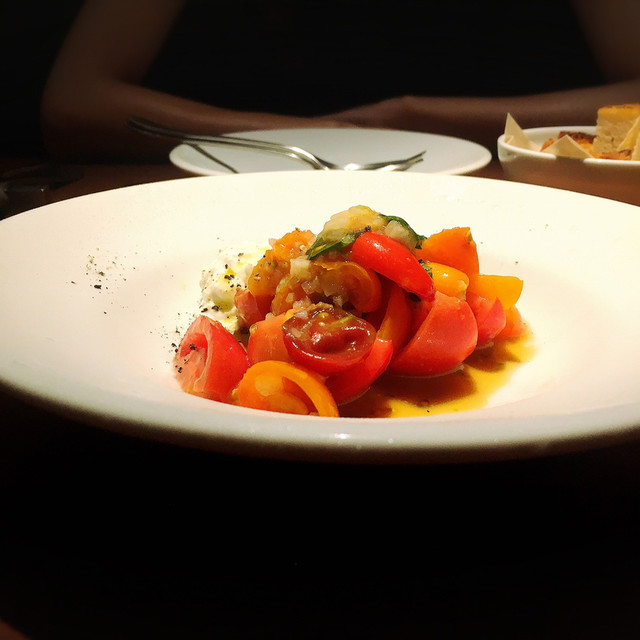 ● 完熟トマト、ブッラータチーズ、柑橘のサラダ