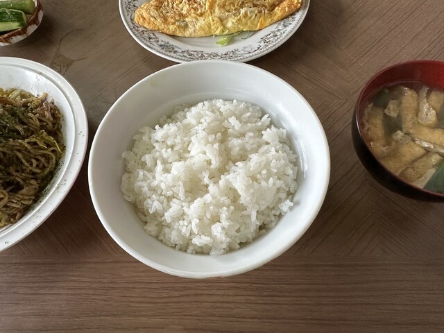 玉子焼定食520円+肉入り焼そば420円=940円cash