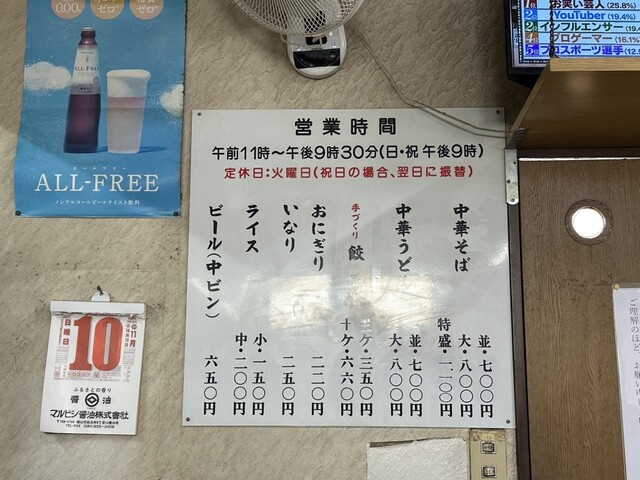オペは、男性が麺上げ、女性が盛り付け、女性が餃子と会計、女性のホール担当と四人体制です。