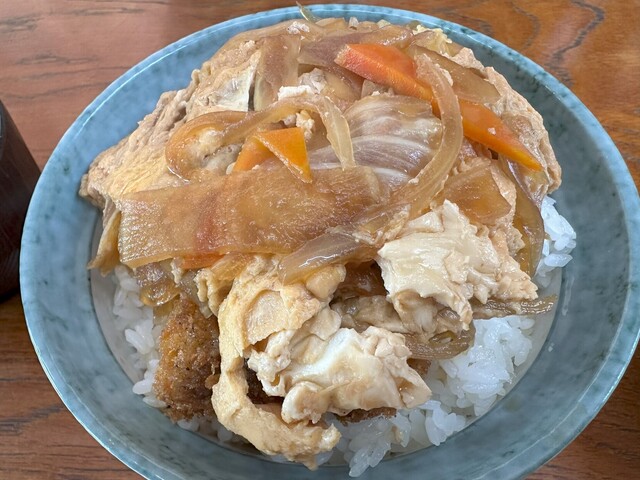 カツ丼は沖縄流のカツと野菜が煮込まれています。