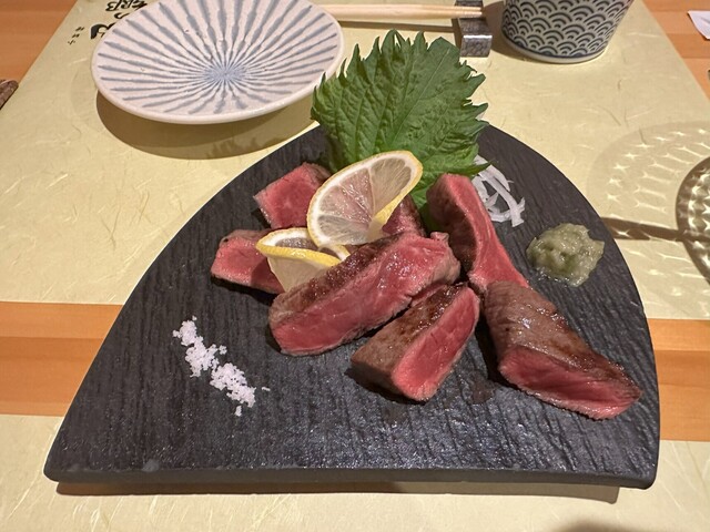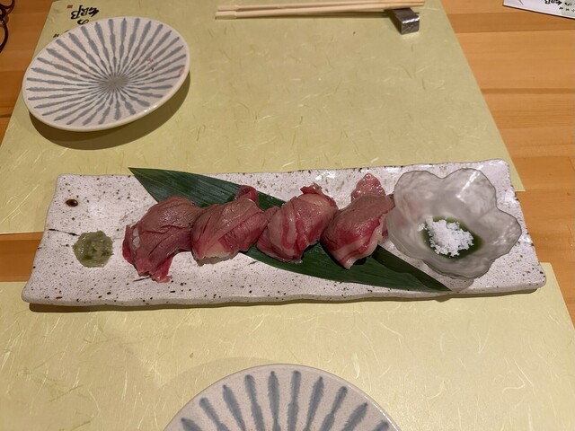 注文は「おまかせ@4,000円」。もずくから始まり、お刺身、宮古牛、アグー豚など、