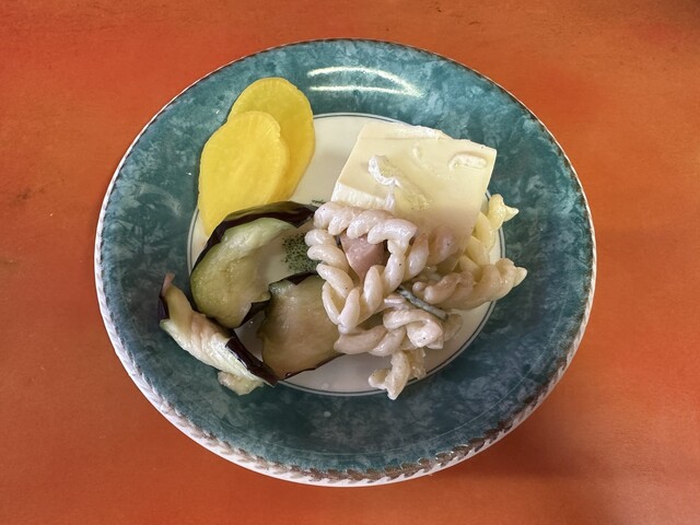 ビールを注文すると漬物などのおつまみが無料提供され、皆さんそれで飲んでいました。
