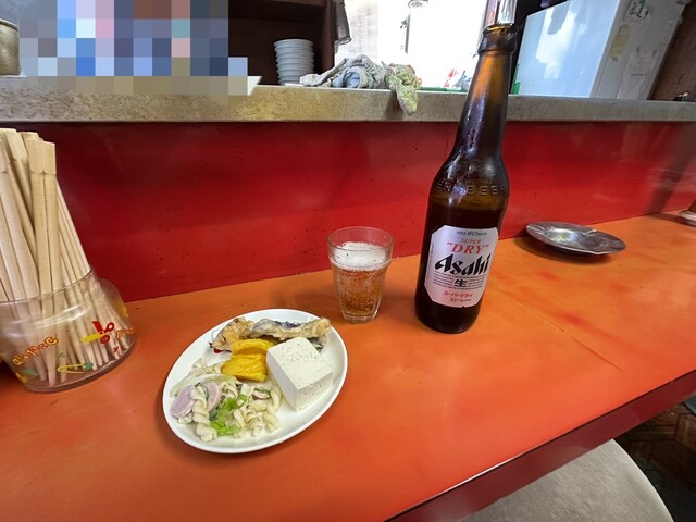 今日は平日のためか、昼飲みと食事のお客さんが半々でした。
