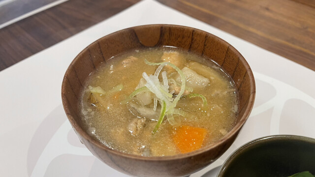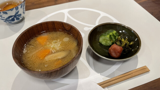 ご飯は、山形県産雪若丸だそうです。つやつやで、本当に美味しいご飯で先付の香の物で一口いただくと食欲そそりました。続く豚汁も最高。