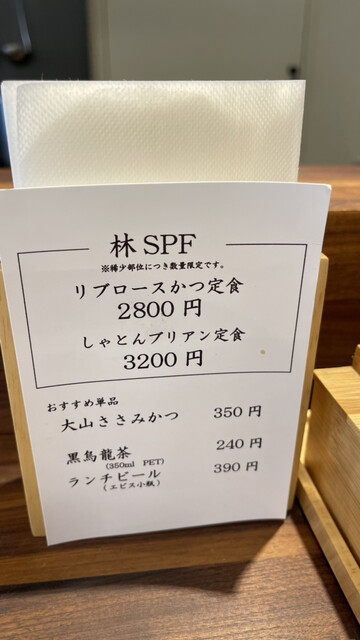 リブロースかつ定食 2800円、それから、大山ささみかつ350円を追加です。