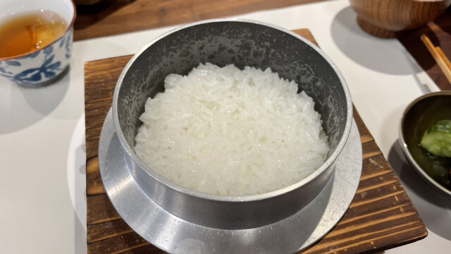釜で炊きたてのご飯は粒が完璧に整って甘く美味しく、漬物でもりもり食が進んでしまうほど。ご飯がかなり美味しい。また、茶碗2杯たっぷりの量があります。