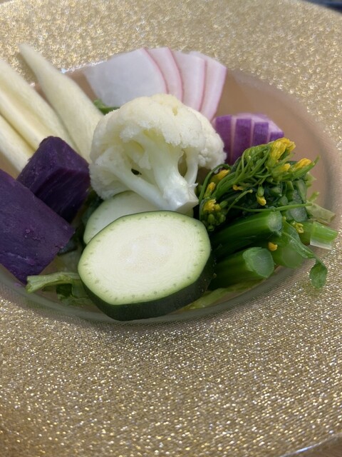 鎌倉野菜は天ぷら、サラダ、バーニャカウダ、グリル…といろいろな料理があって迷いましたが、バーニャカウダを選択。