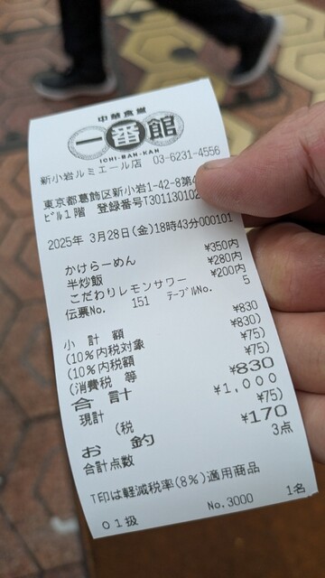 新橋の日高屋や新小岩南口駅前の日高屋、御徒町の福しんにするか悩んだけど…この日も一番館に決定!