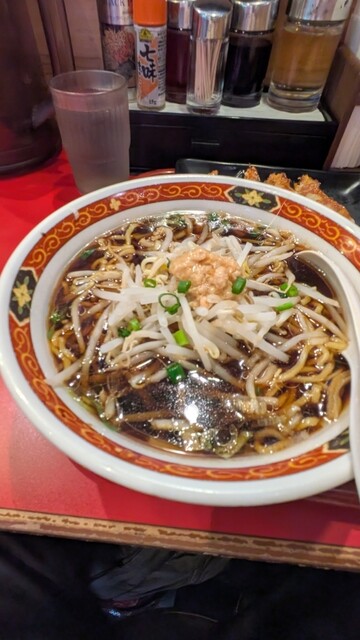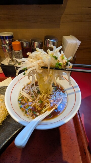 かけラーメンって名称ですけど…もやしラーメンは、コクがある薄口醤油ラーメン+もやしトッピングです。