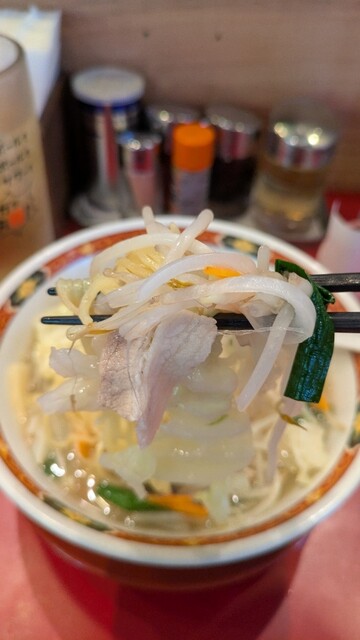 こないだ食べた福しん(タンメン600円)より野菜の種類は、少ないけど…もやし以外の野菜や豚肉の量が沢山で食べ応えあった。麺も福しんより少し多く感じた。1杯のタンメンで十分に野菜と麺とスープを楽しめました。