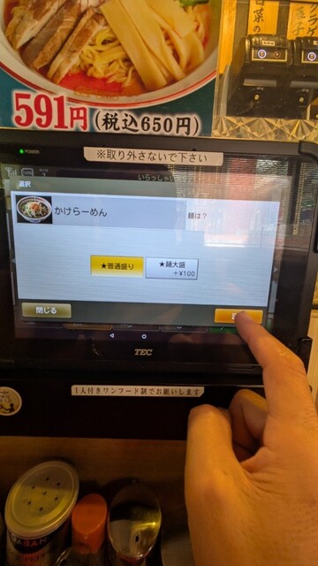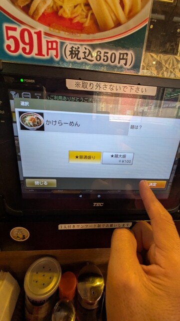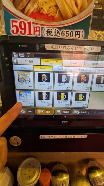 会計は、出入口のレジにあるpaypayをスキャンして490円ごちそう様でした。かけラーメンや酎ハイが目玉商品って、感じでした。