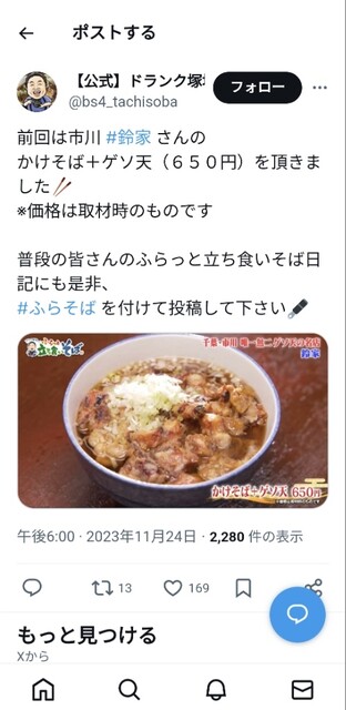 ※BS日テレの『ドランク塚地のふらっと立ち食いそば』で…以前、紹介されてからお客さんが途切れなくなったなぁ~
