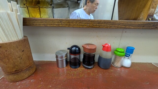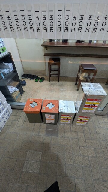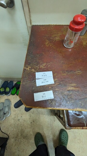 先客は、いませんでしたが…残飯が全席のカウンター上に置かれてた。丁度、皆さんが帰られたタイミングで来店したみたいで待たずに着席。Good timing!