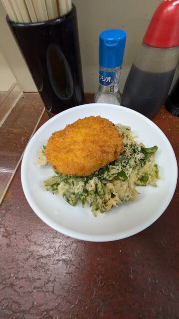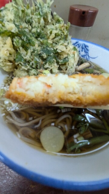最近は、かけそば・山菜・春菊・コロッケ・月見などの組み合わせが多かったから…かなり久しぶりのゲソ天。