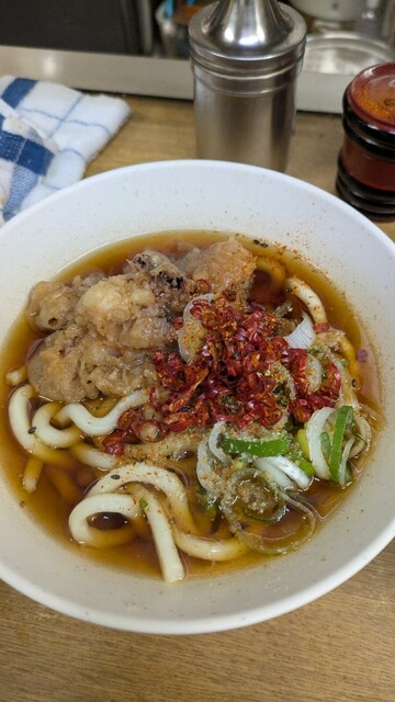 うどんを食べてる時、残っただしに…卓上調味料にある“唐辛子(鷹の爪)のぶつ切り”を少し入れましたが辛かったけど美味しかった。