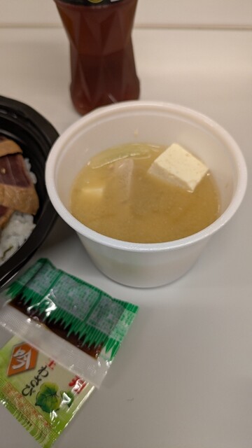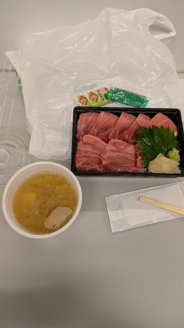 3階のフードコートや敷地内にあるベンチやテーブル席でのイートインも出来ますが…いつもの様に社食にテイクアウト。鮪のアラ汁なんて…鮪専門店ならではを味わえて美味しい⤴